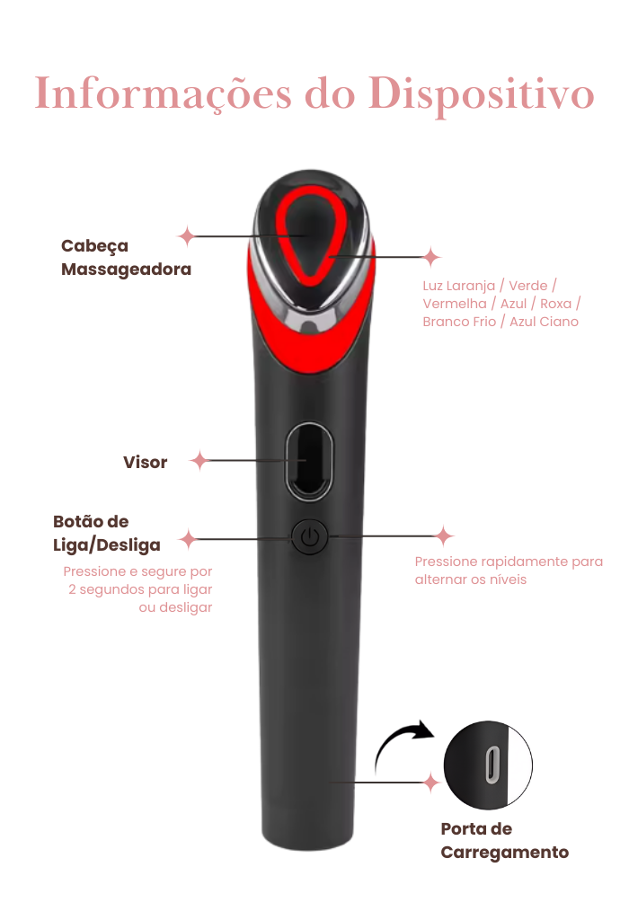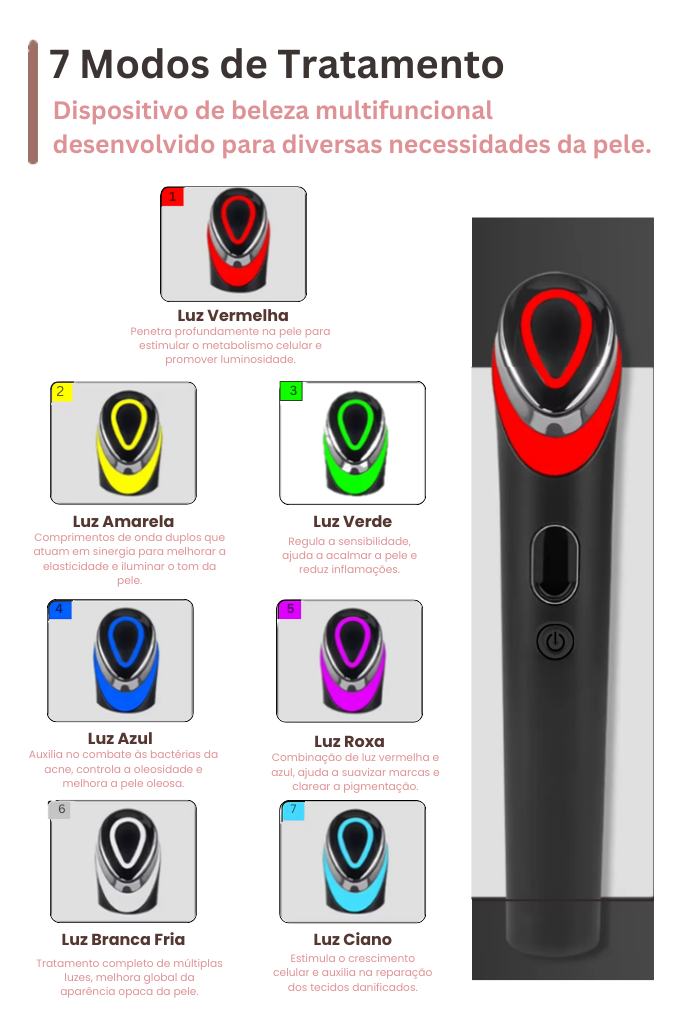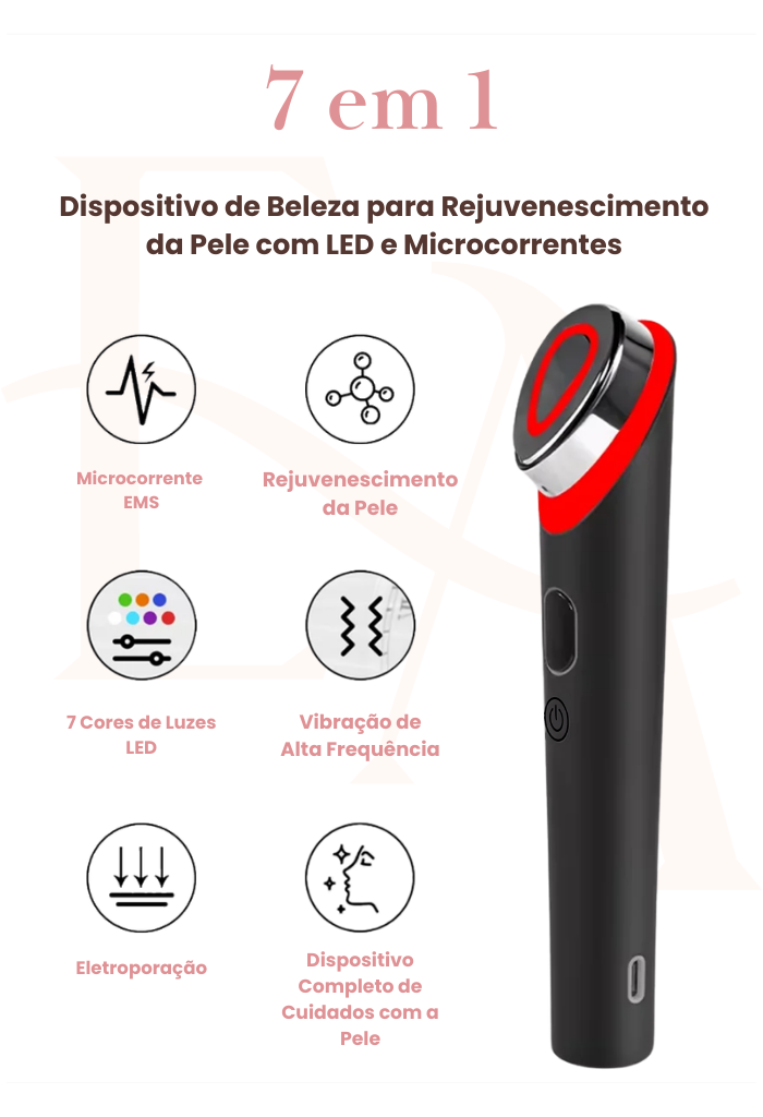 Combinando microcorrente, terapia de luz LED e massagem térmica, ele estimula a produção de colágeno, melhora a elasticidade e redefine os contornos do rosto — tudo no conforto da sua casa.